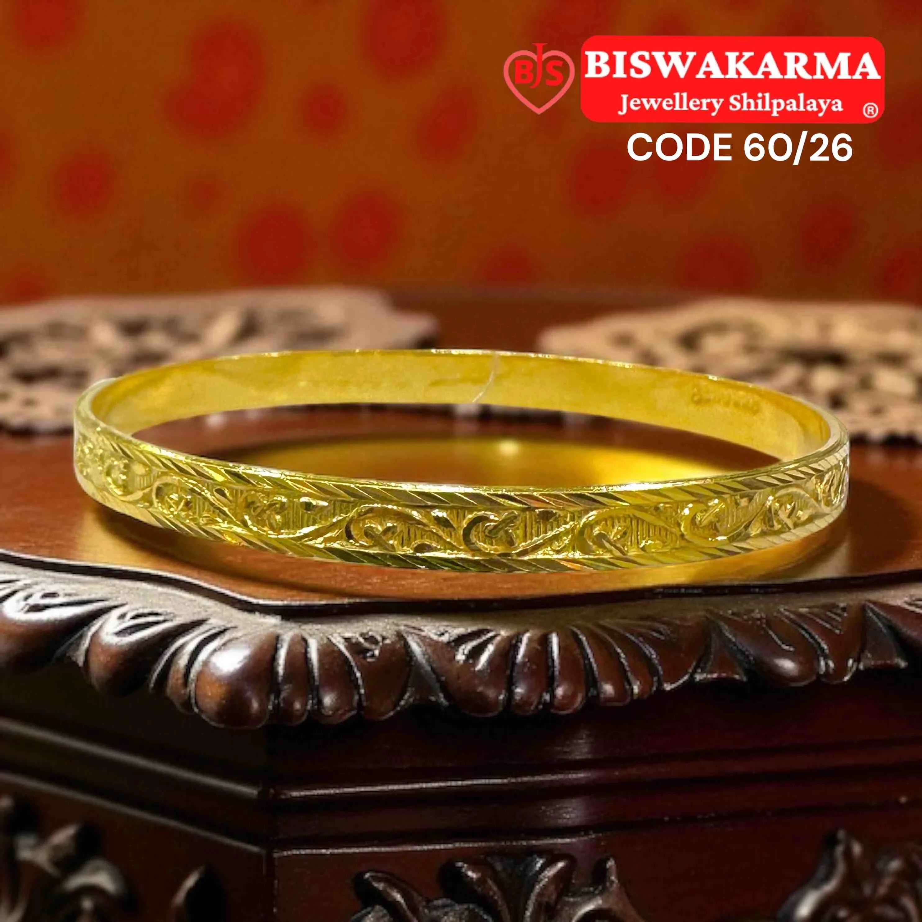 Exquisite gold cover bangle with detailed curved engravings, offering regal elegance and refined charm for everyday sophistication.
