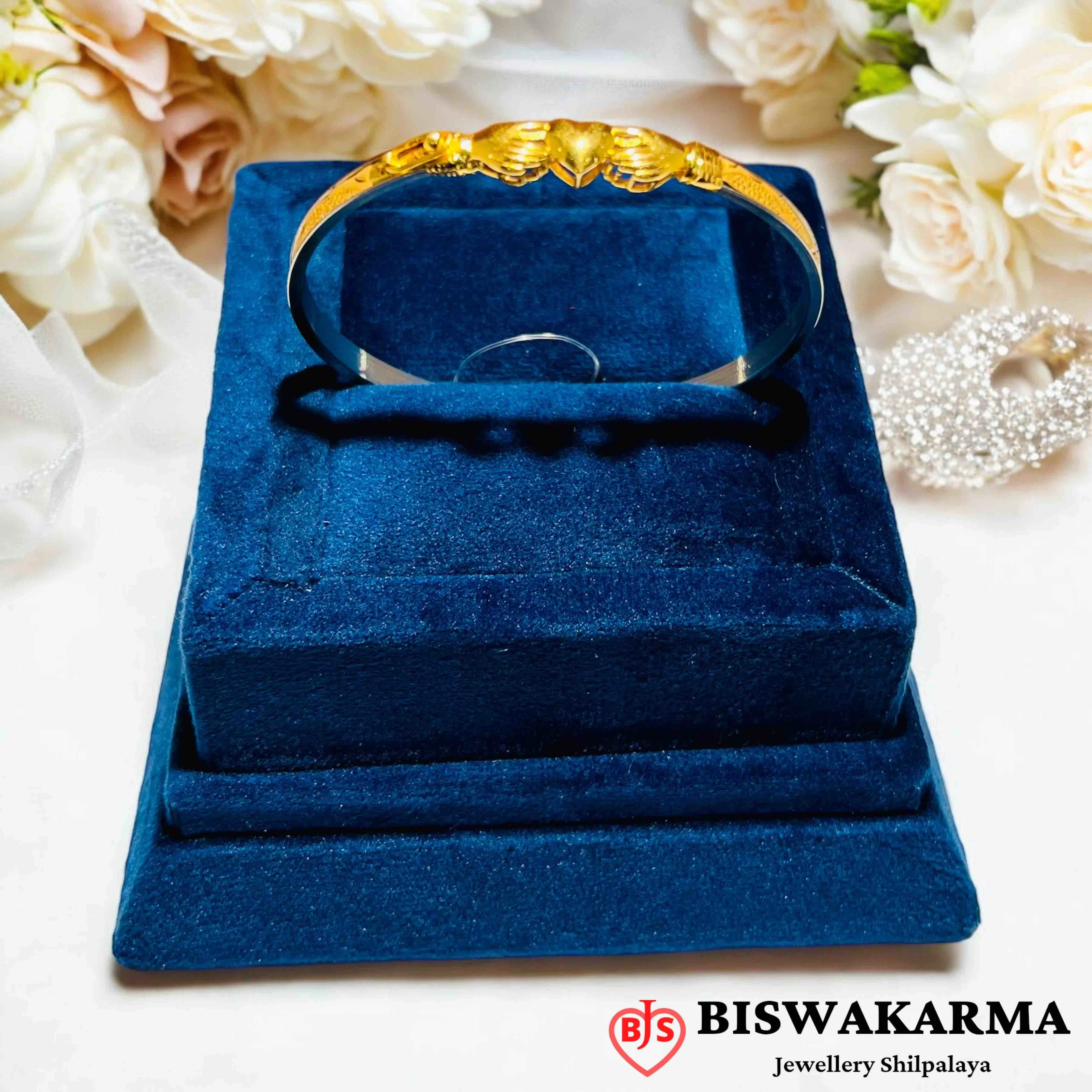 Two bold petal shapes open from the center, filled with neat lines and soft curves. The layered texture and bright gold shine give it a rich, graceful charm.