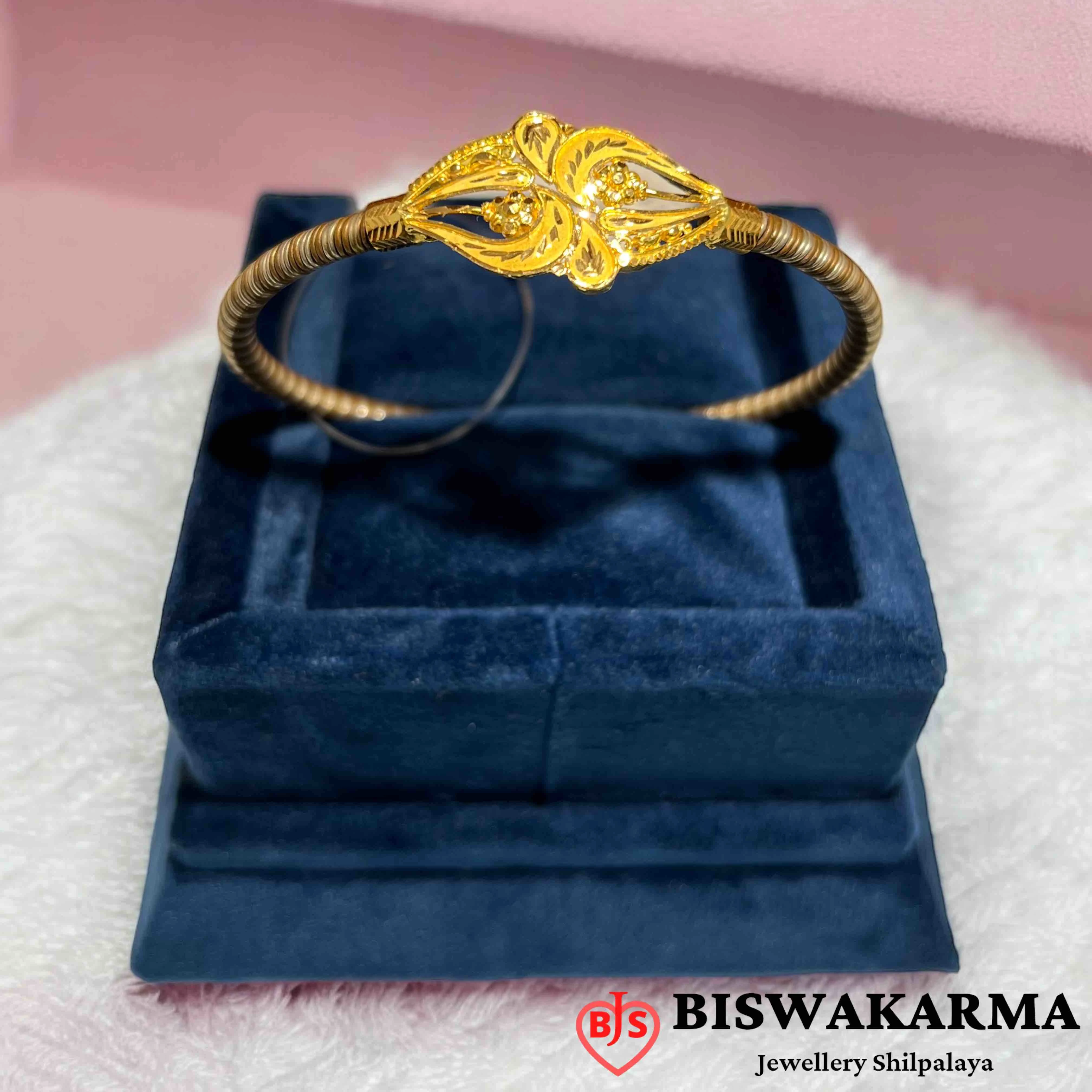 Two soft petal shapes twist into a gentle knot, detailed with tiny dotted lines and smooth curves. The bright gold shine gives it a warm, graceful charm.