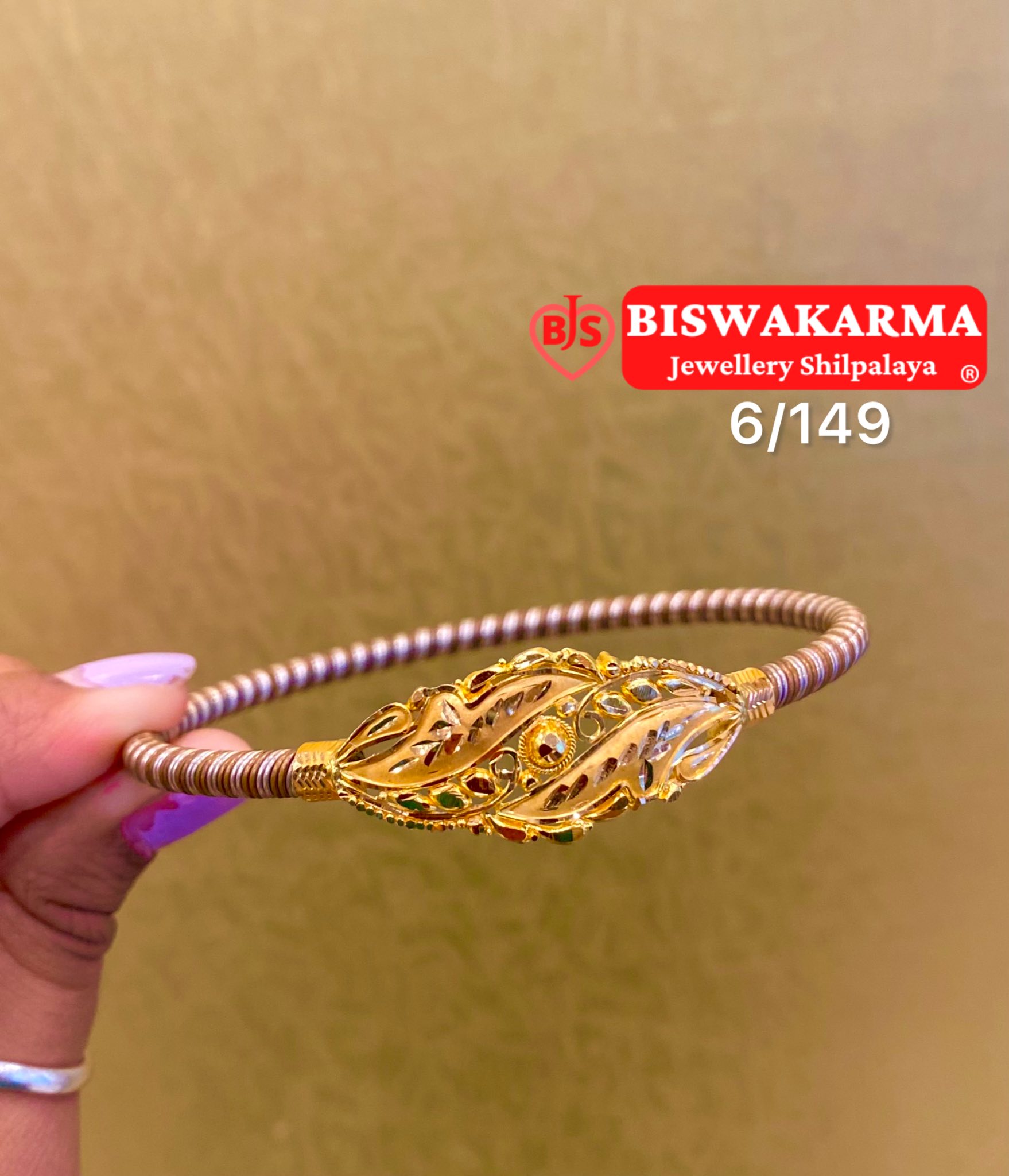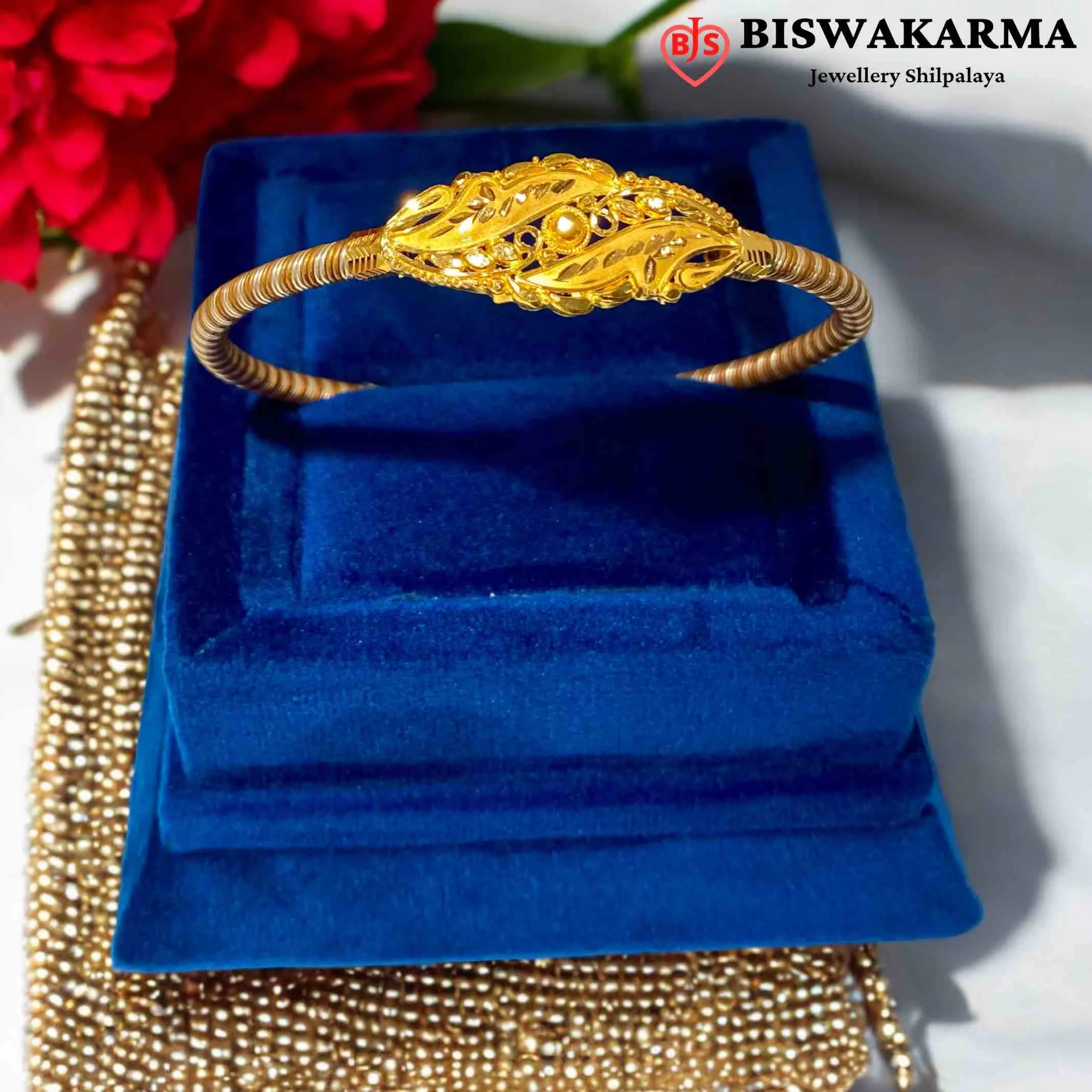 A long leaf-shaped center filled with tiny mesh cuts and soft curves. The flowing pattern and bright gold shine give it a rich, eye-catching charm.