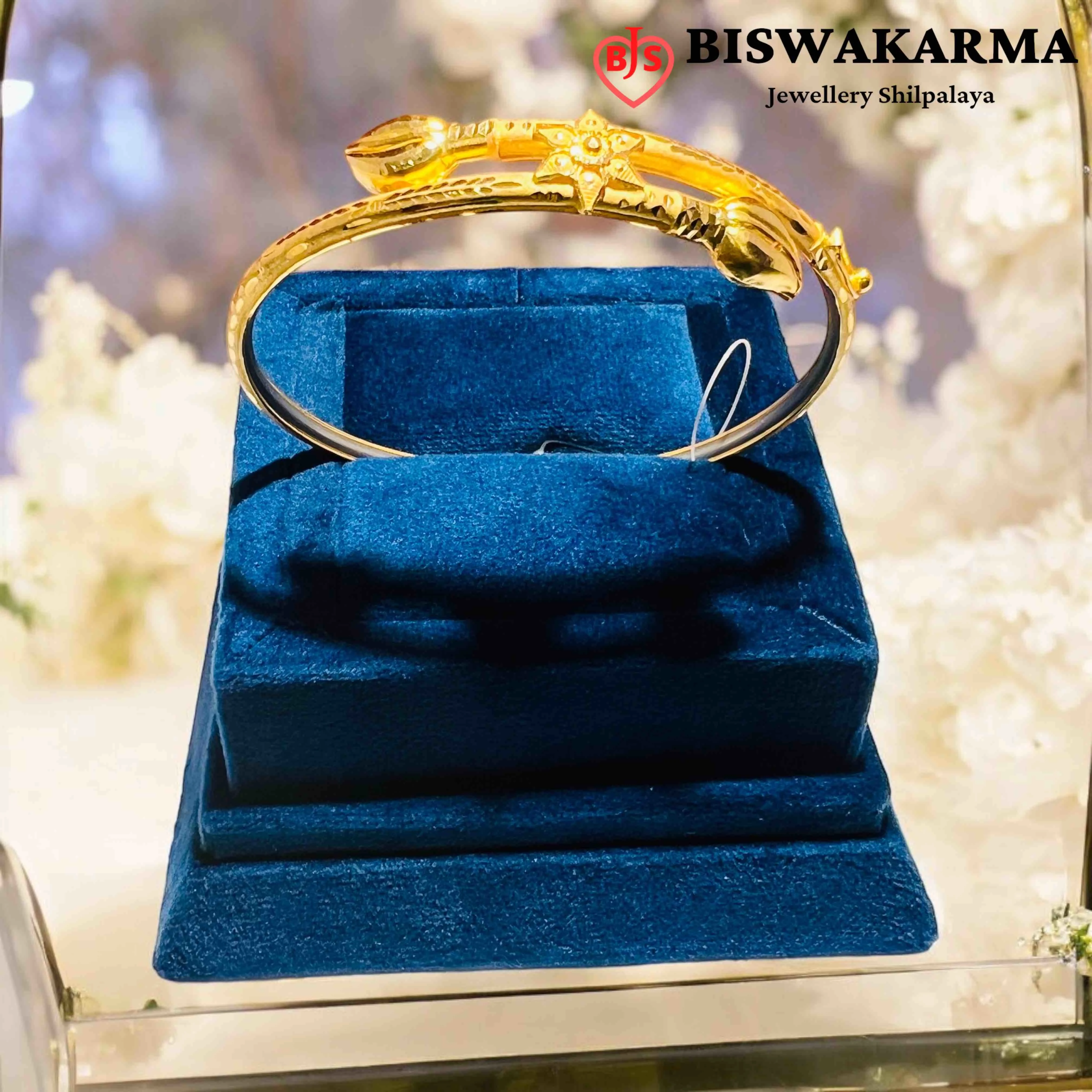 A pointed cone end meets a soft leaf crest, detailed with tiny lines and gentle curves. The bright gold shine and clean flow give it a bold, charming look.