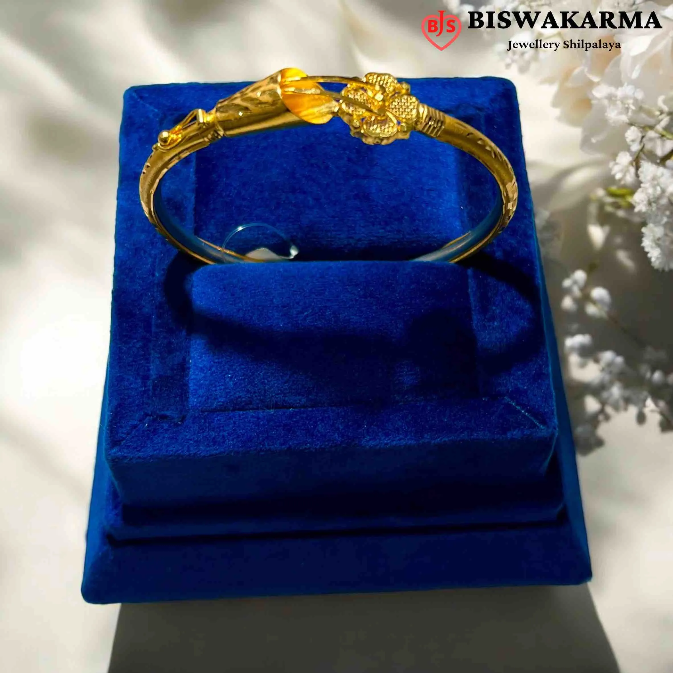 A pointed cone shape meets a tiny flower cluster, detailed with clean cuts and soft curves. The bright gold shine gives it a warm, eye-catching charm.