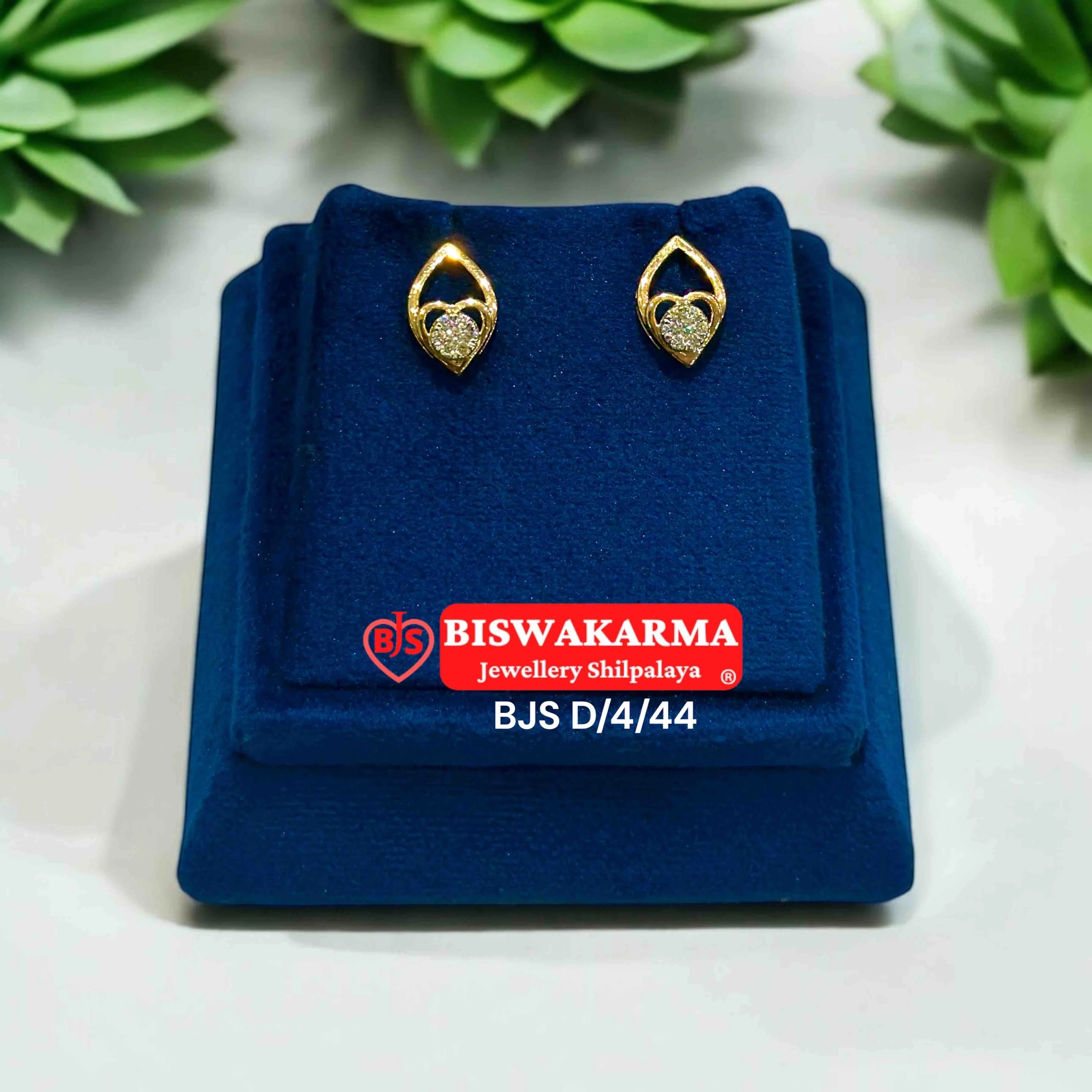 Stylish gold earrings shaped like delicate leaves with a diamond heart core, radiating natural charm and refined everyday elegance.