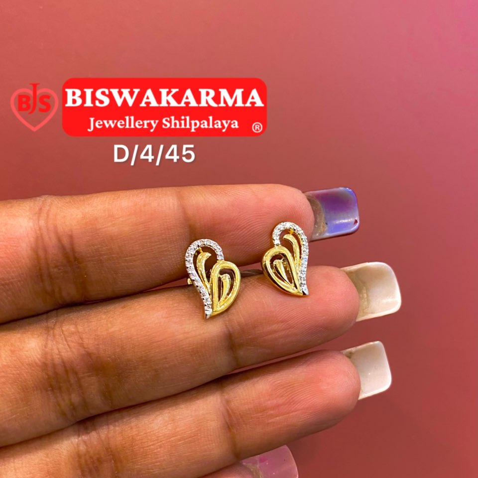 Stylish twin-leaf gold earrings adorned with diamonds, symbolizing natural grace and refined sparkle for both daily and festive wear.