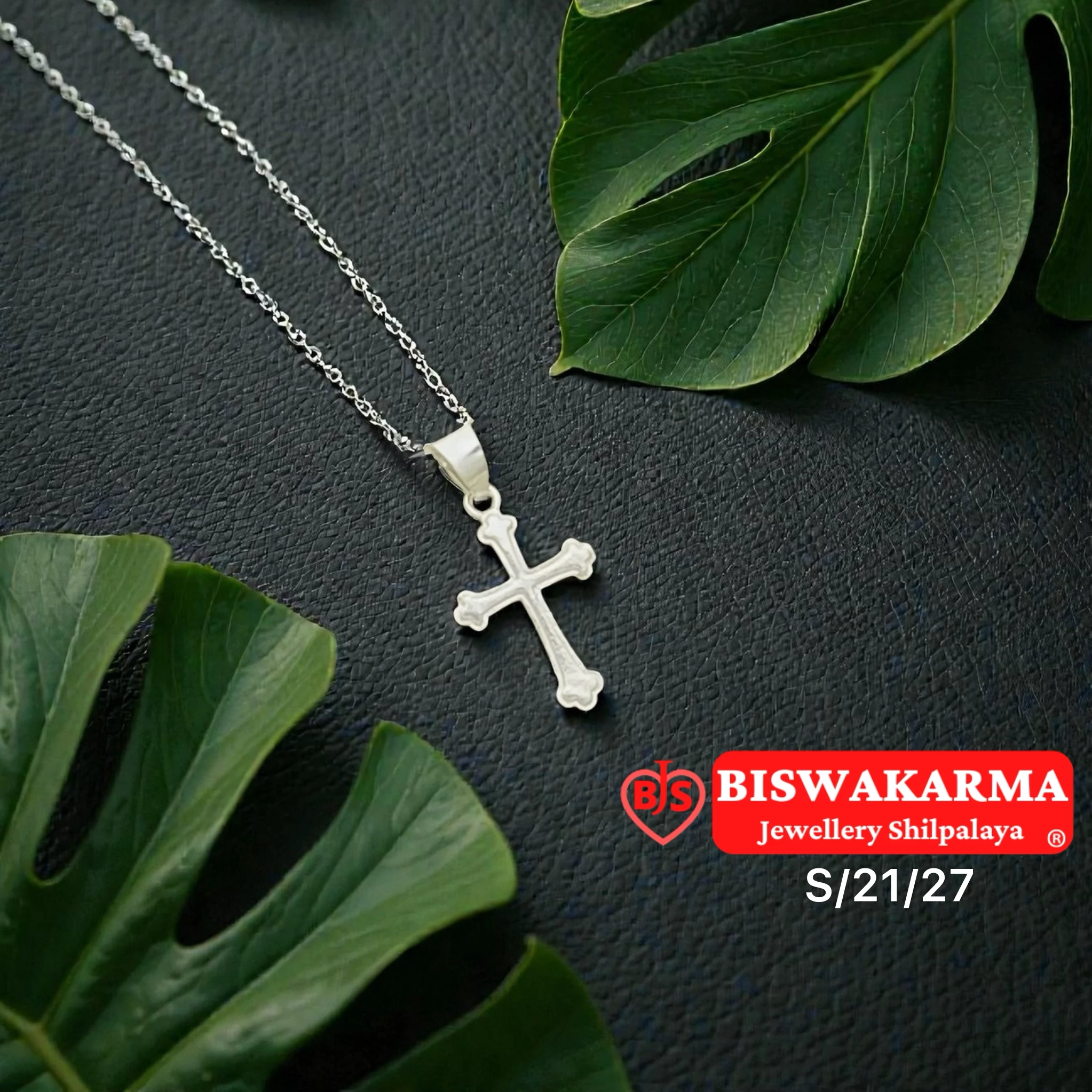 Plain silver crosscut with soft edges. Flat surface with gentle curves. Clean soldered bail. High polish finish gives a smooth hand feel.
