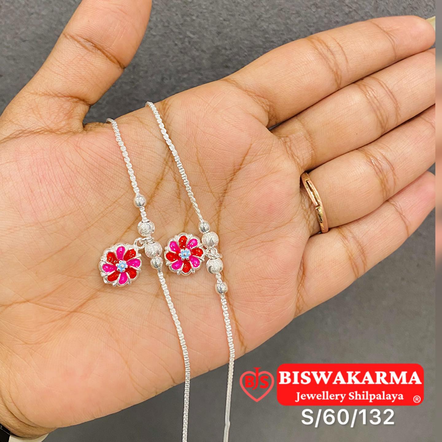 Elegant silver chain accented with a petite floral centrepiece. The flower is detailed with glossy pink enamel petals and a tiny stone at the core for a gentle sparkle. Fine craftsmanship, smooth finish, and a lightweight feel—ideal for daily wear or a thoughtful gift.
