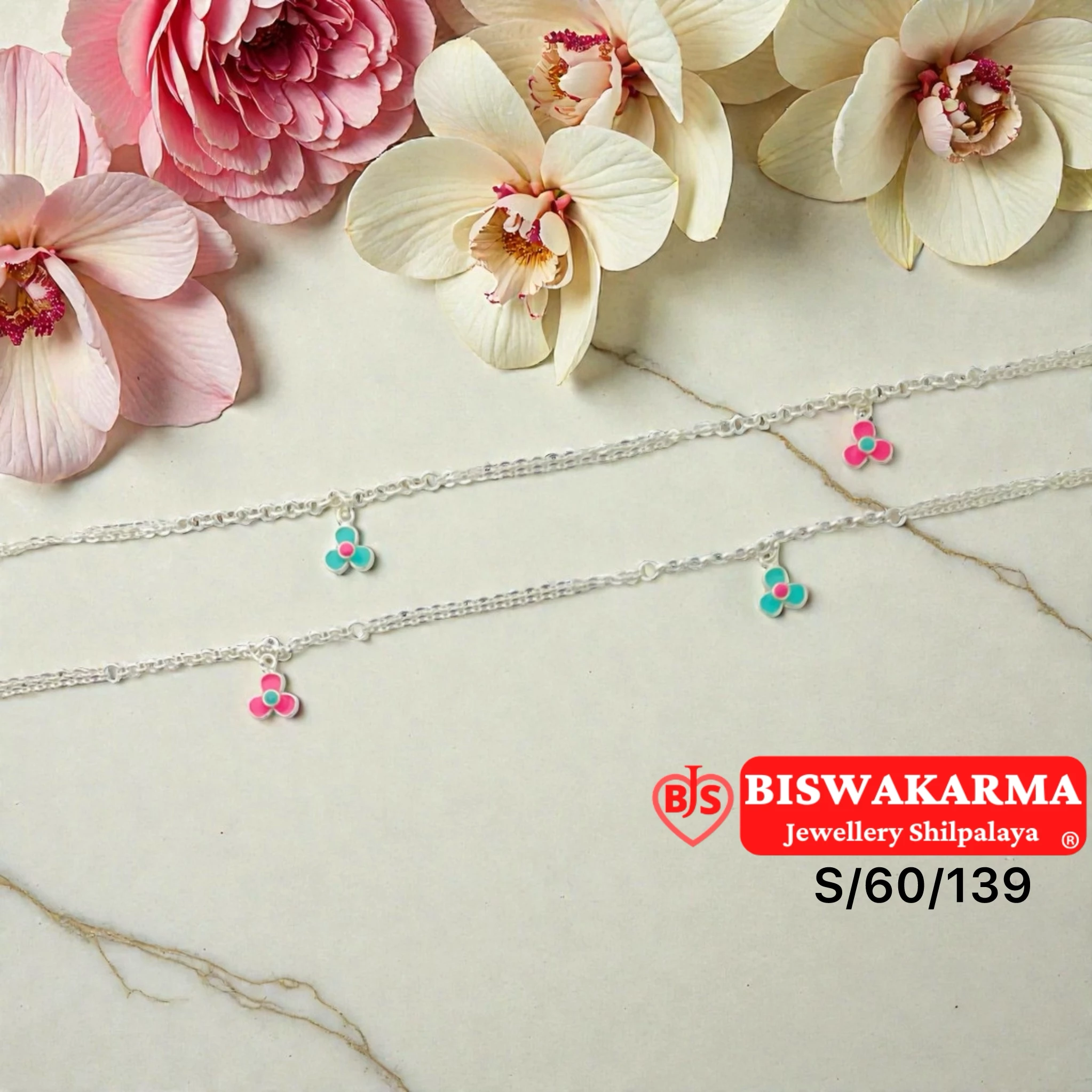 S/60/139 Tiny Bloom Silver Anklet